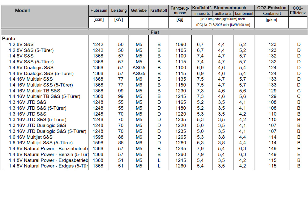 Alle Verbrauchsangaben und Emissionswerte nach RL 80/1268/EWG.